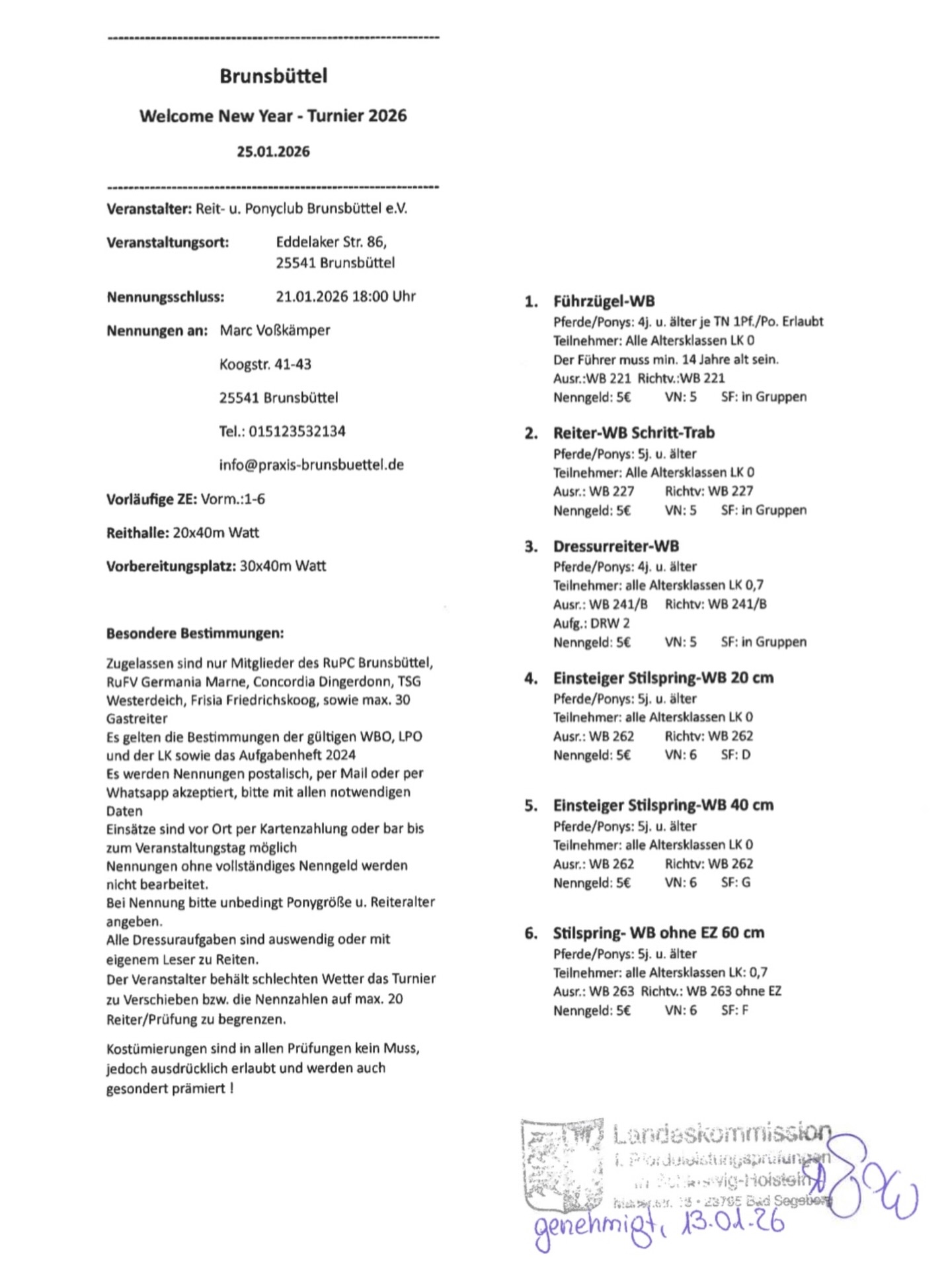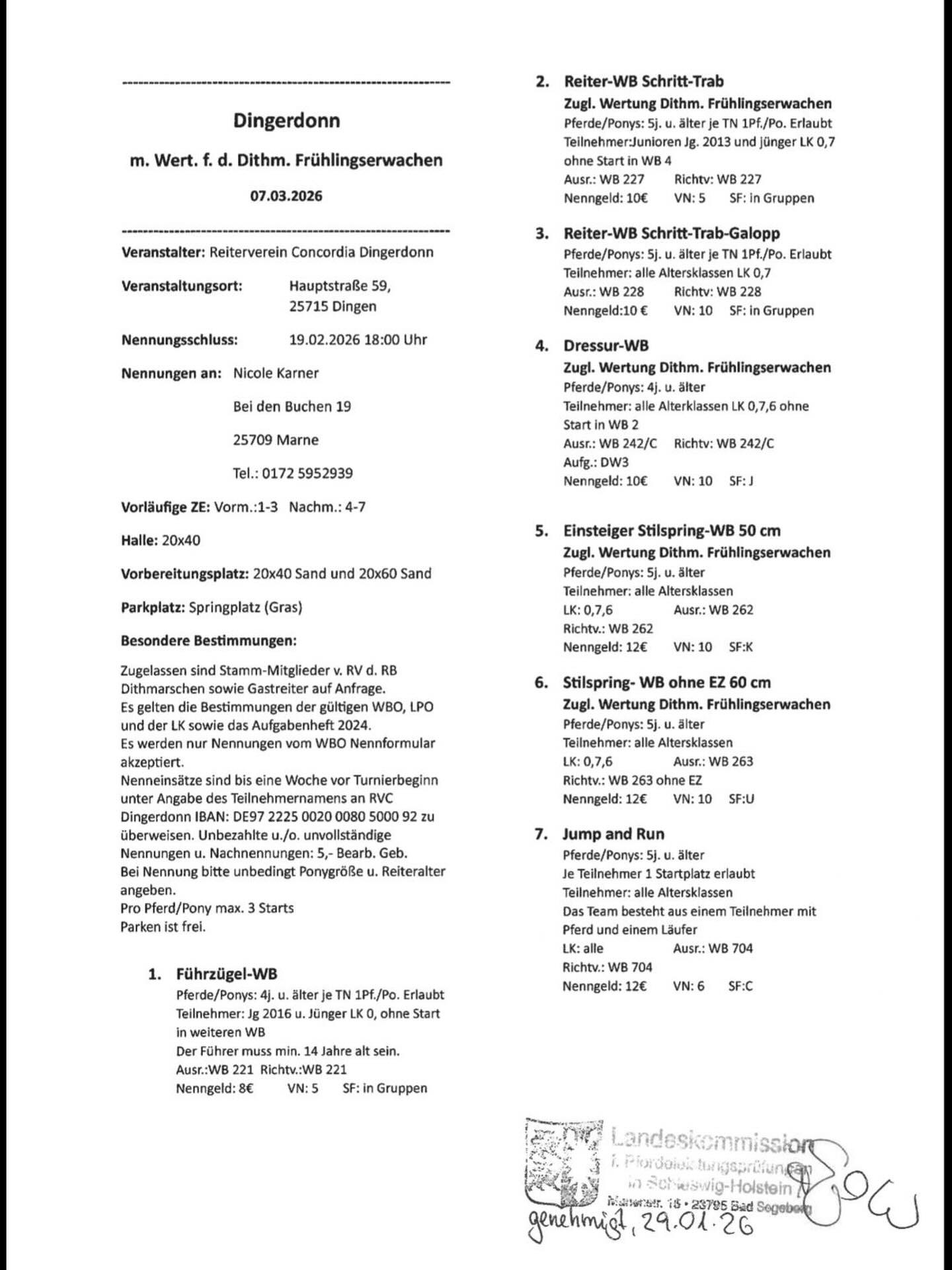 Alle genannten Termine erheben keinen Anspruch auf Richtigkeit und Durchführung. Ob ein Turnier tatsächlich stattfindet kann der Pferd+Sport entnommen werden.